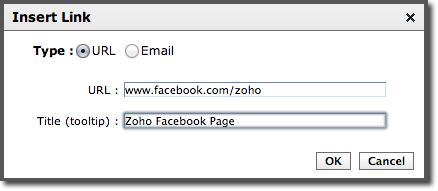 - Link - You can enter the relevant web address in the Insert Link pop up to hyperlink the image.