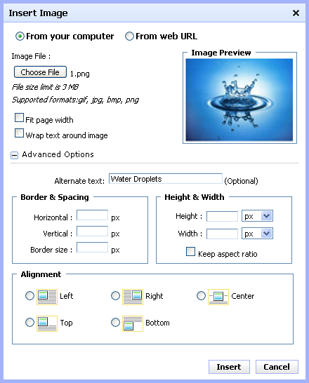 - You can either choose to upload an image from your desktop or link an image from any internet web page.