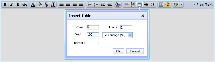- Click the Insert Table icon in the formatting bar to insert a table.