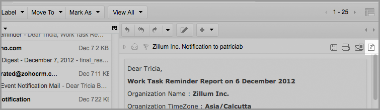 Zoho Mail provides several options that might be necessary for troubleshooting or to sort out other issues such as an improper rendition of the email. These options include provisions to get the headers of the email, solution for a garbled message, saving the email, and printing out the email.