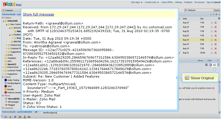 - If you still have issues in the display of the email, contact Zoho Mail Support with your email headers.