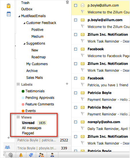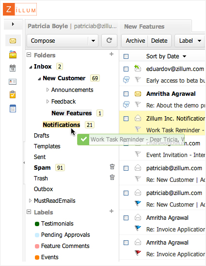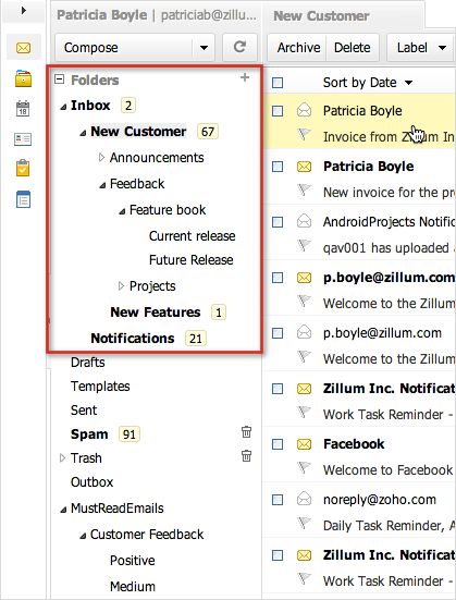 Zoho webmail supports multi-level folder structure unlike other webmail interfaces out there. This means you can organize your emails in a perfect tree structure and be able to navigate smoothly.