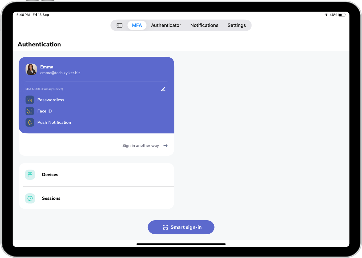 Customize your everyday authentication experience on the iPad with easy navigation through the floating tab bar for the authenticator app.