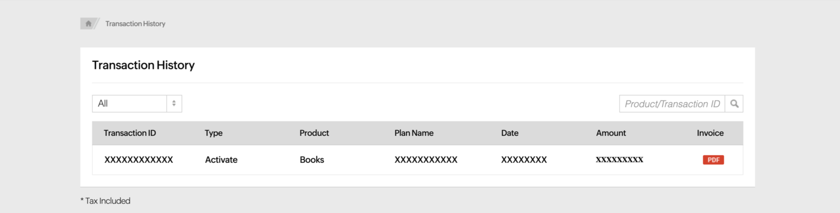 You’ll be able to view all your transactions along with the Date, Plan Type and Amount Paid. You can download a PDF of the transaction by clicking the icon next to it.