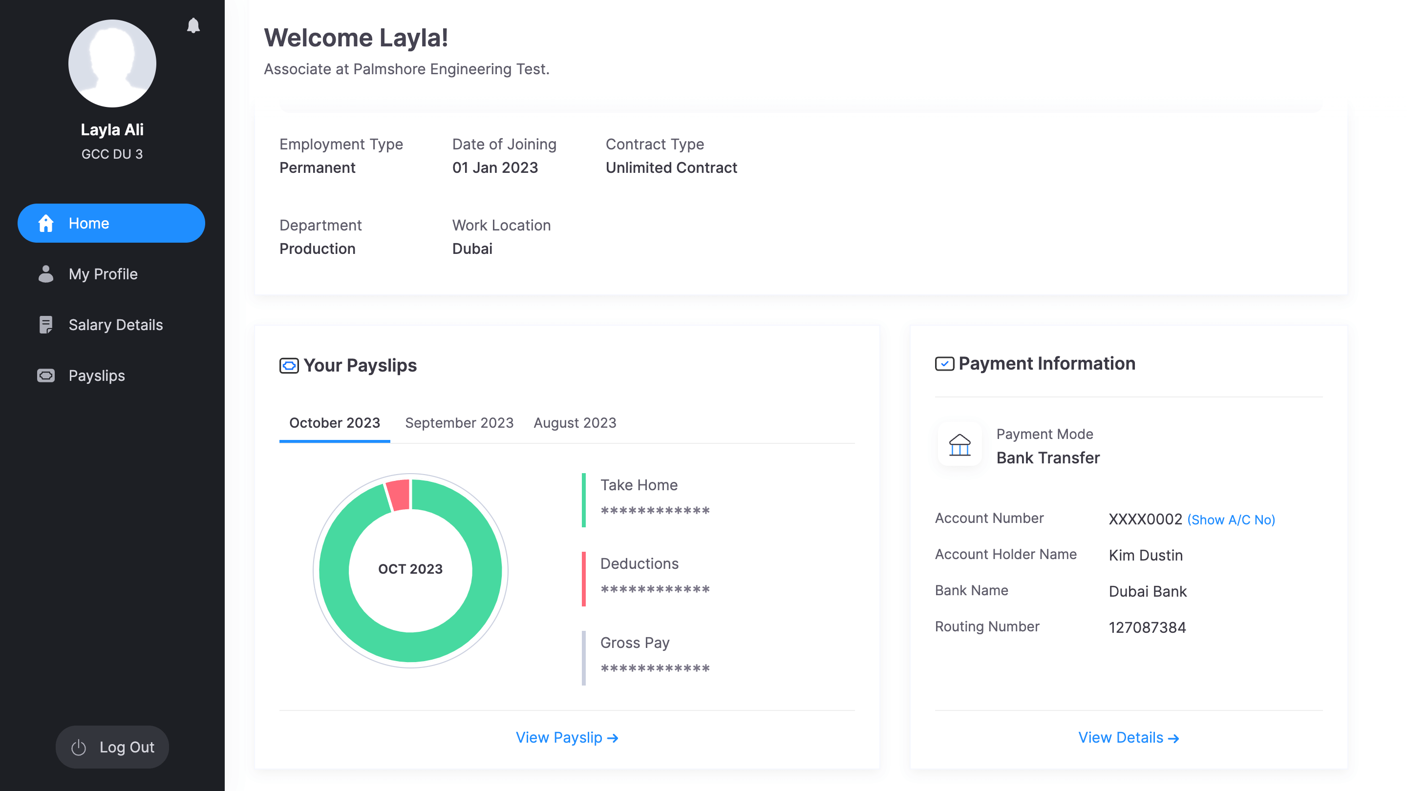 - Payslips: Retrieve and download your payslips for a specific period, facilitating easy record-keeping.