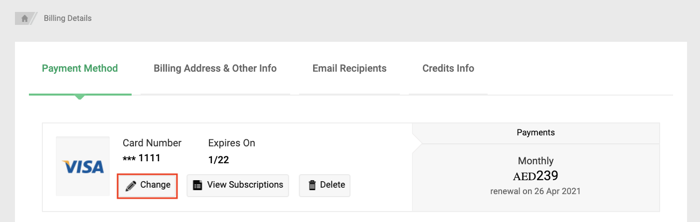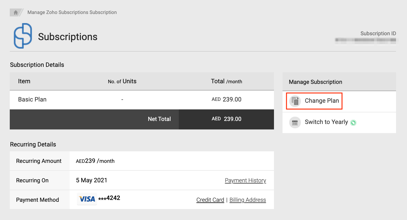 - In the Subscription Details page, click Change Plan.