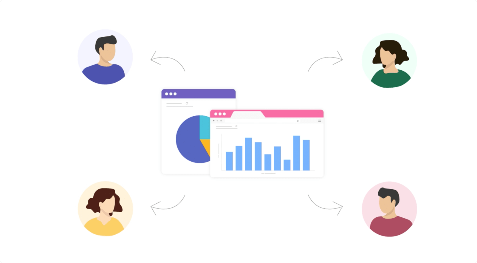 Share data, reports, and dashboards with your colleagues and collaborate with them.