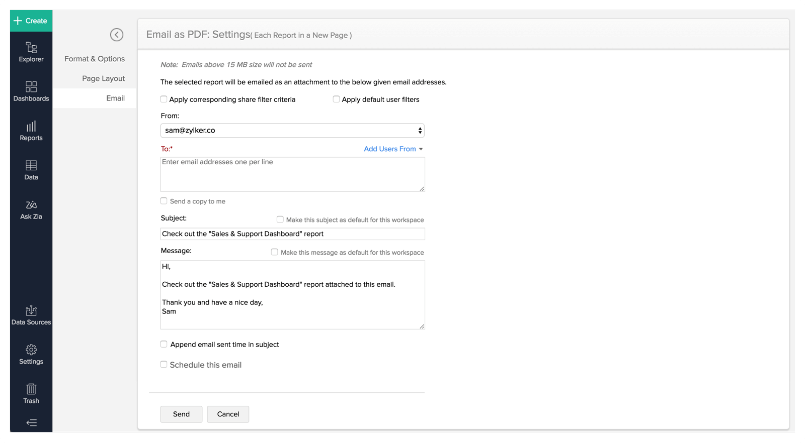 Access and interact with the reports and dashboards you've created in Zoho Analytics.