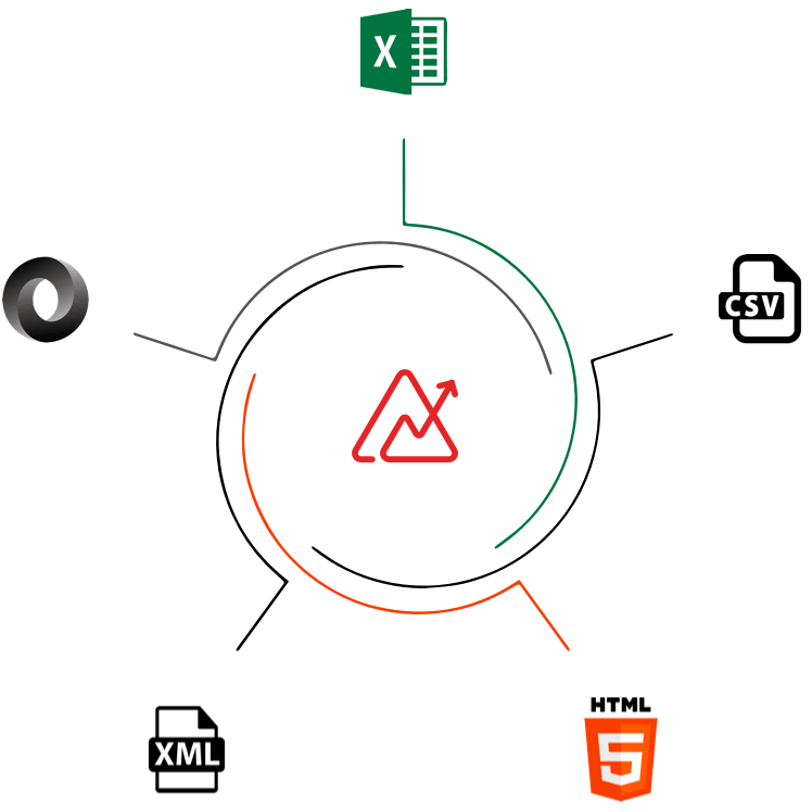 You can upload data from spreadsheets & flat files like Microsoft Excel, CSV, HTML, JSON, XML, text files and more. You can also feed data from online storage services like Zoho Docs, Google Drive, Box, Dropbox & Microsoft OneDrive. Data can also be pulled from Web URL feeds. Learn more