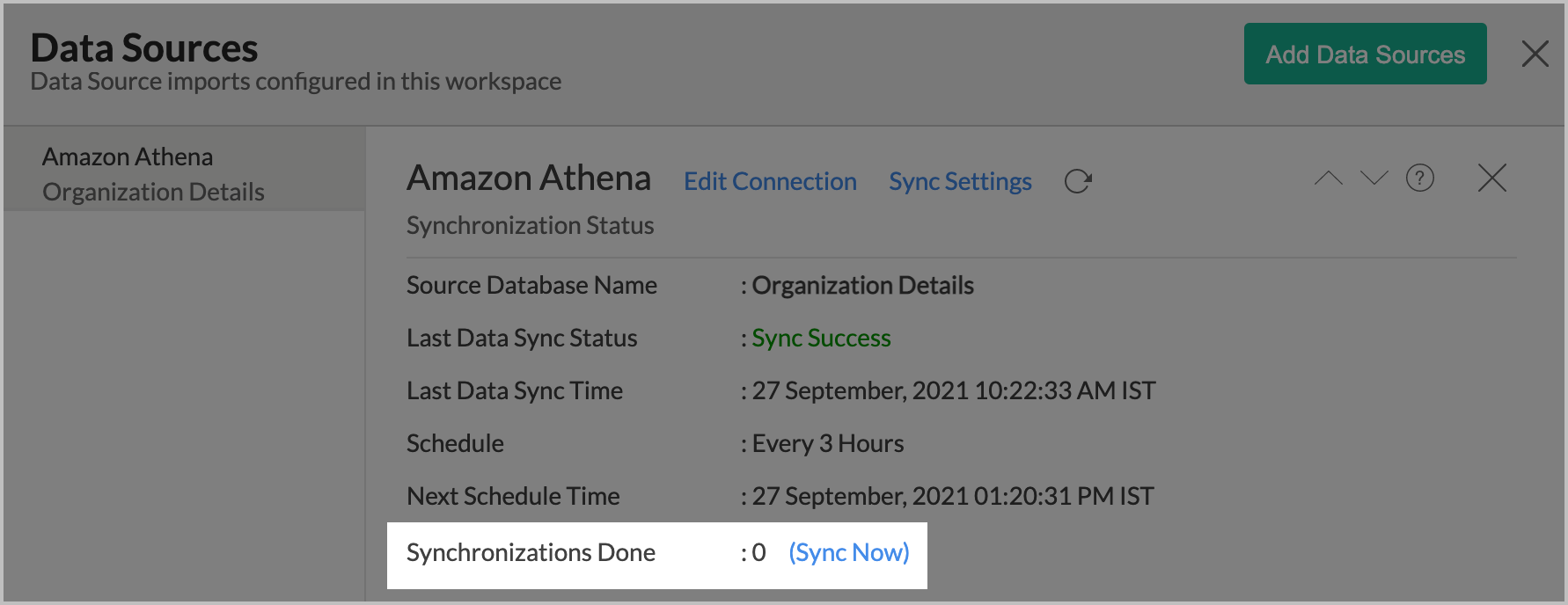 - In the Data Sources page that opens, click the Sync Now link.
