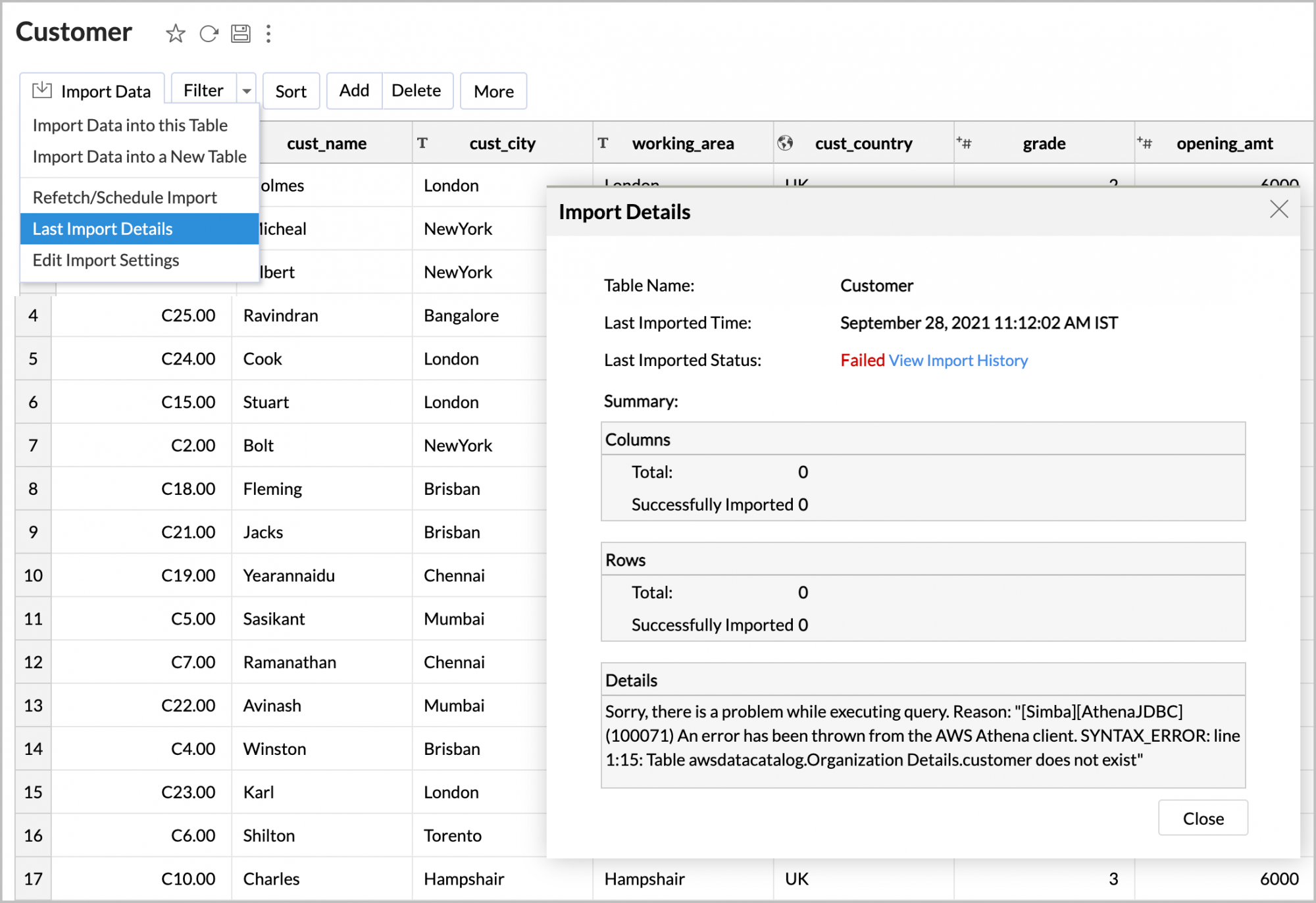 - Can I import data from Amazon Athena database into an existing table in Zoho Analytics?