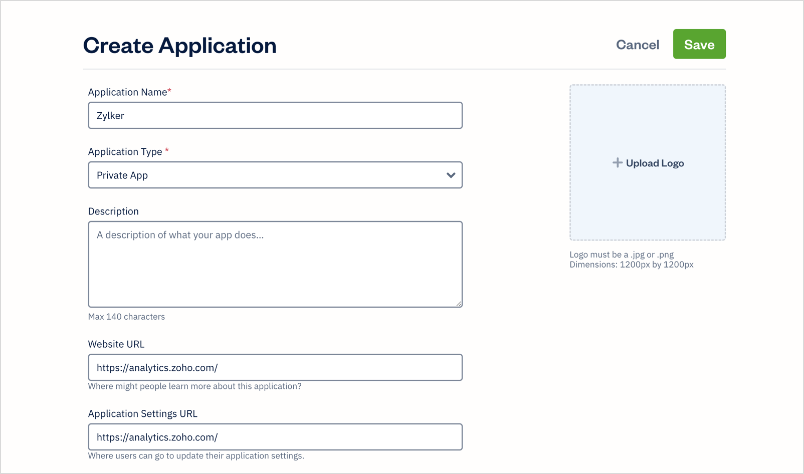 - Provide the following URL in both the Website URL and Application Settings URL fields.