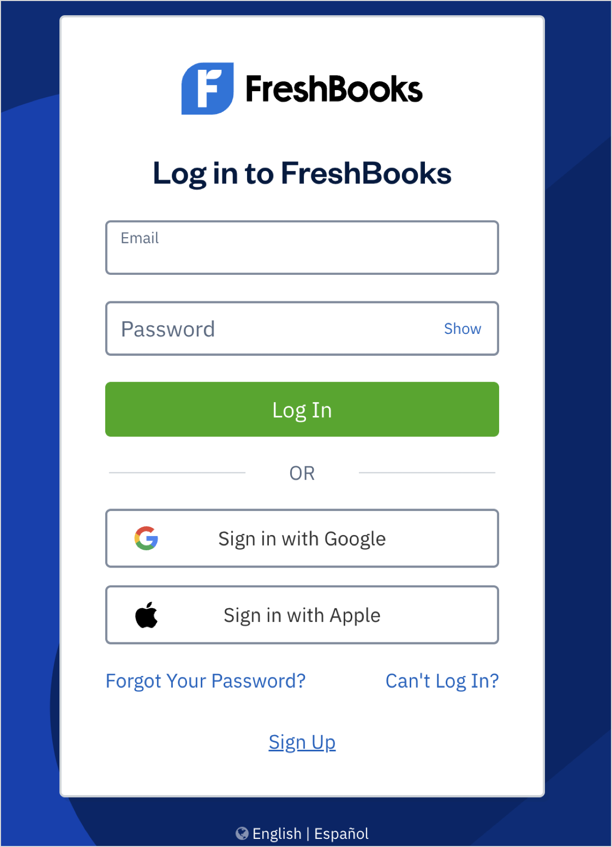 - You will be redirected to the FreshBooks login page, enter the credentials and click Login to authenticate.