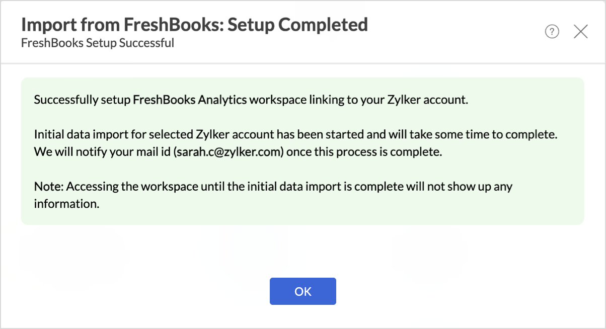 The data import process will be initiated and may take a few minutes depending on the data being imported. You’ll receive an email and in-app notification once the initial data fetch is complete.