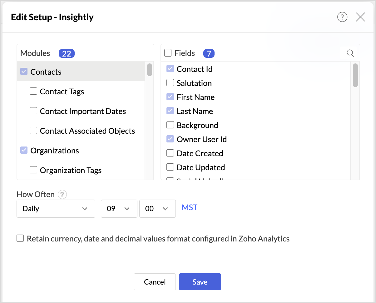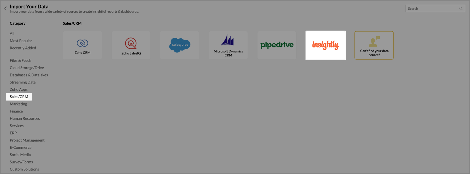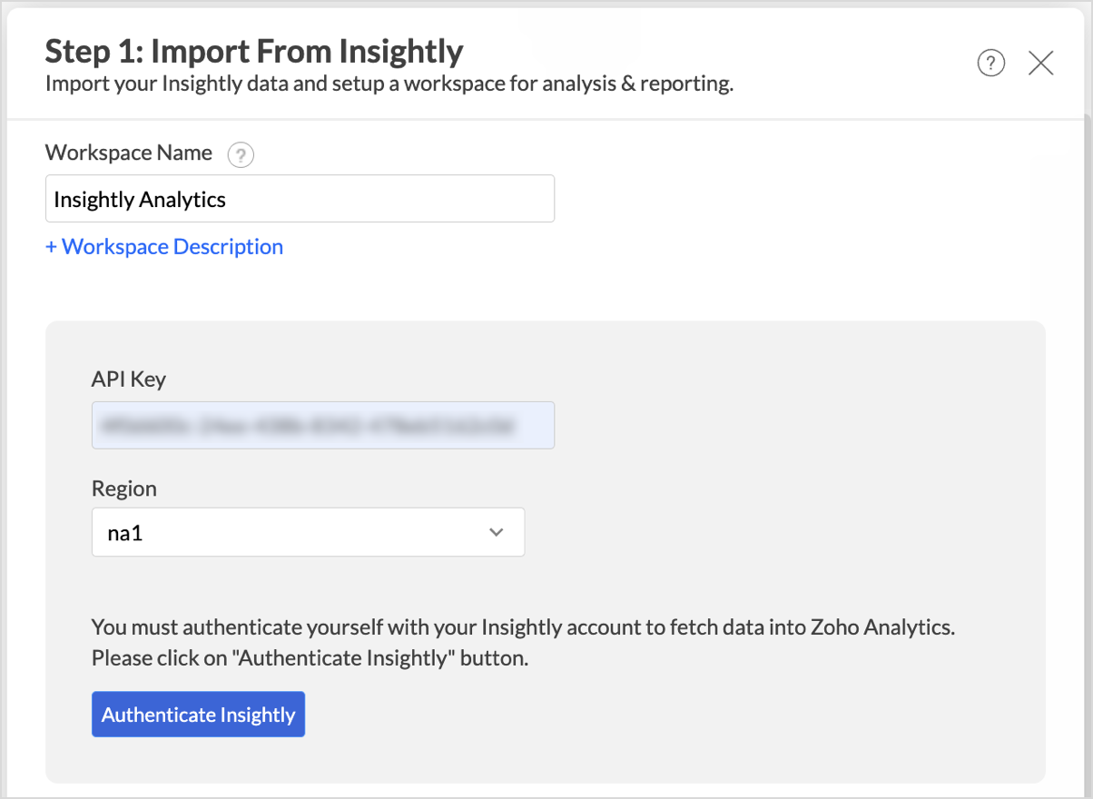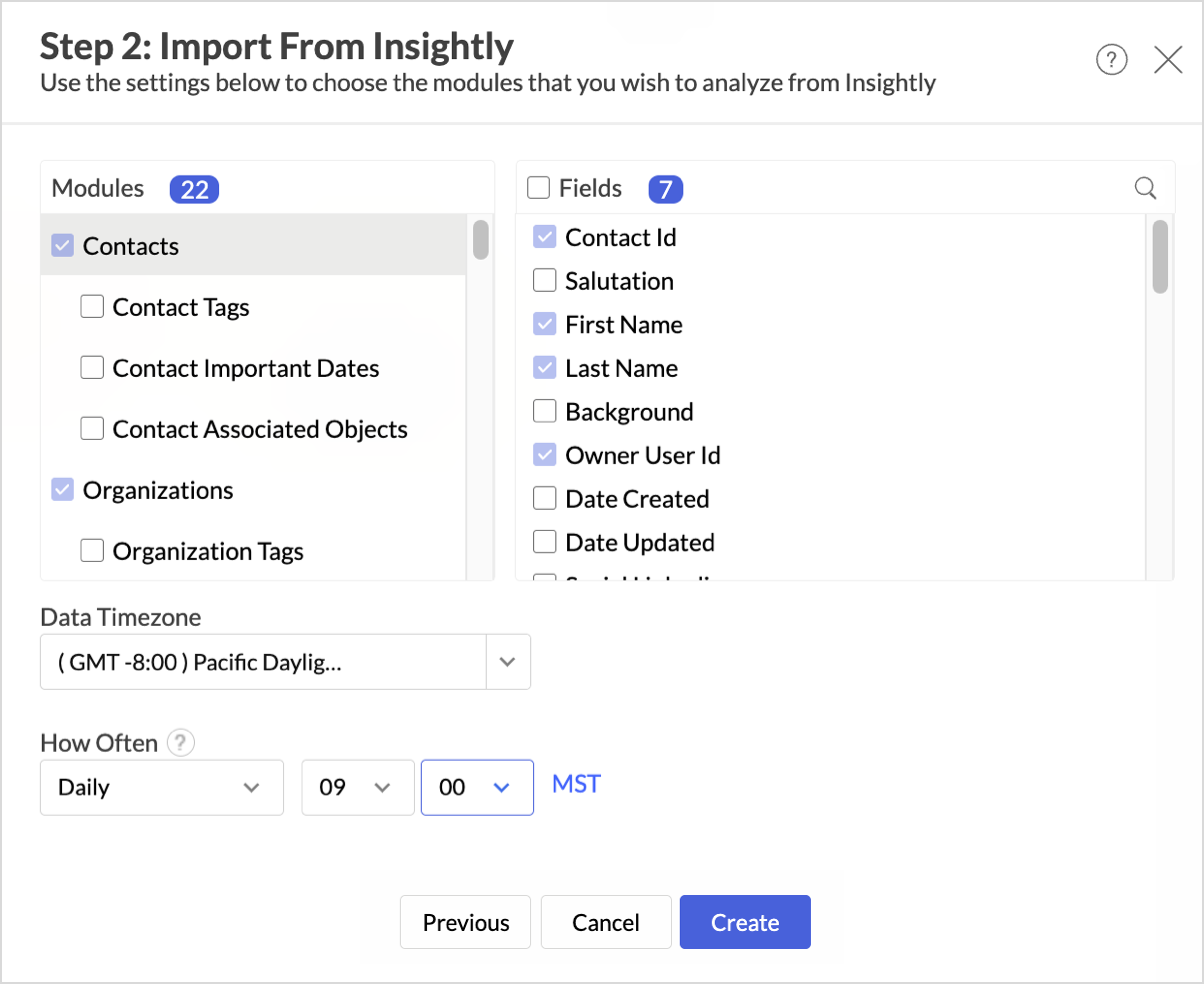 Follow the below steps to import your Insightly data into Zoho Analytics seamlessly: