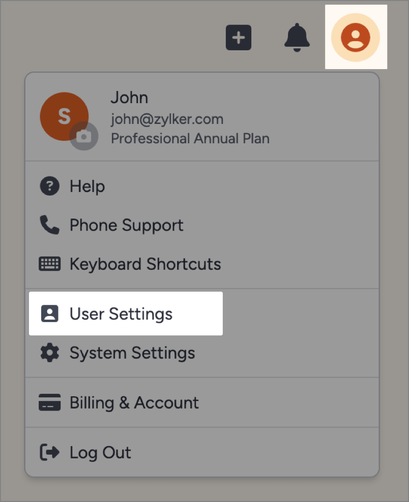 - From the homescreen, click on the Profile and select User Settings.