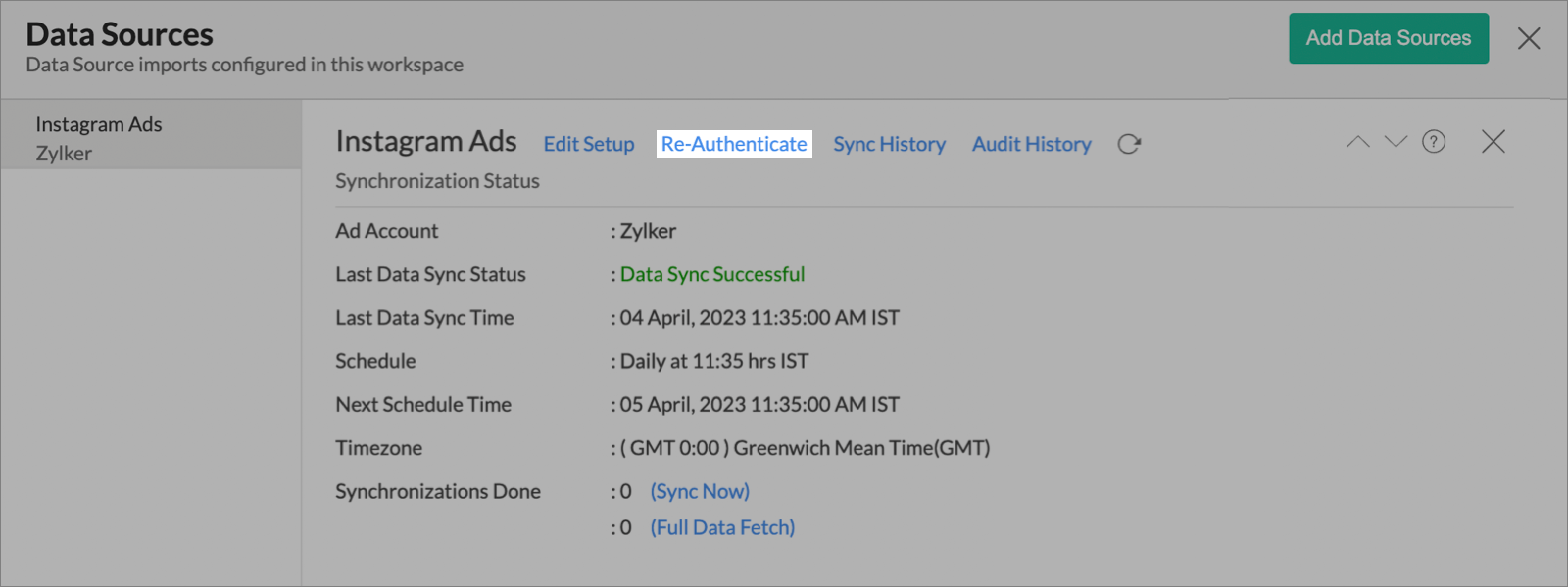 - How do I re-authenticate my Instagram Ads account in Zoho Analytics?