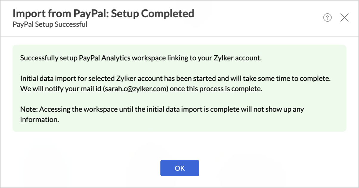 The data import process will be initiated and may take a few minutes depending on the data being imported. You’ll receive an email and in-app notification once the initial data fetch is complete.