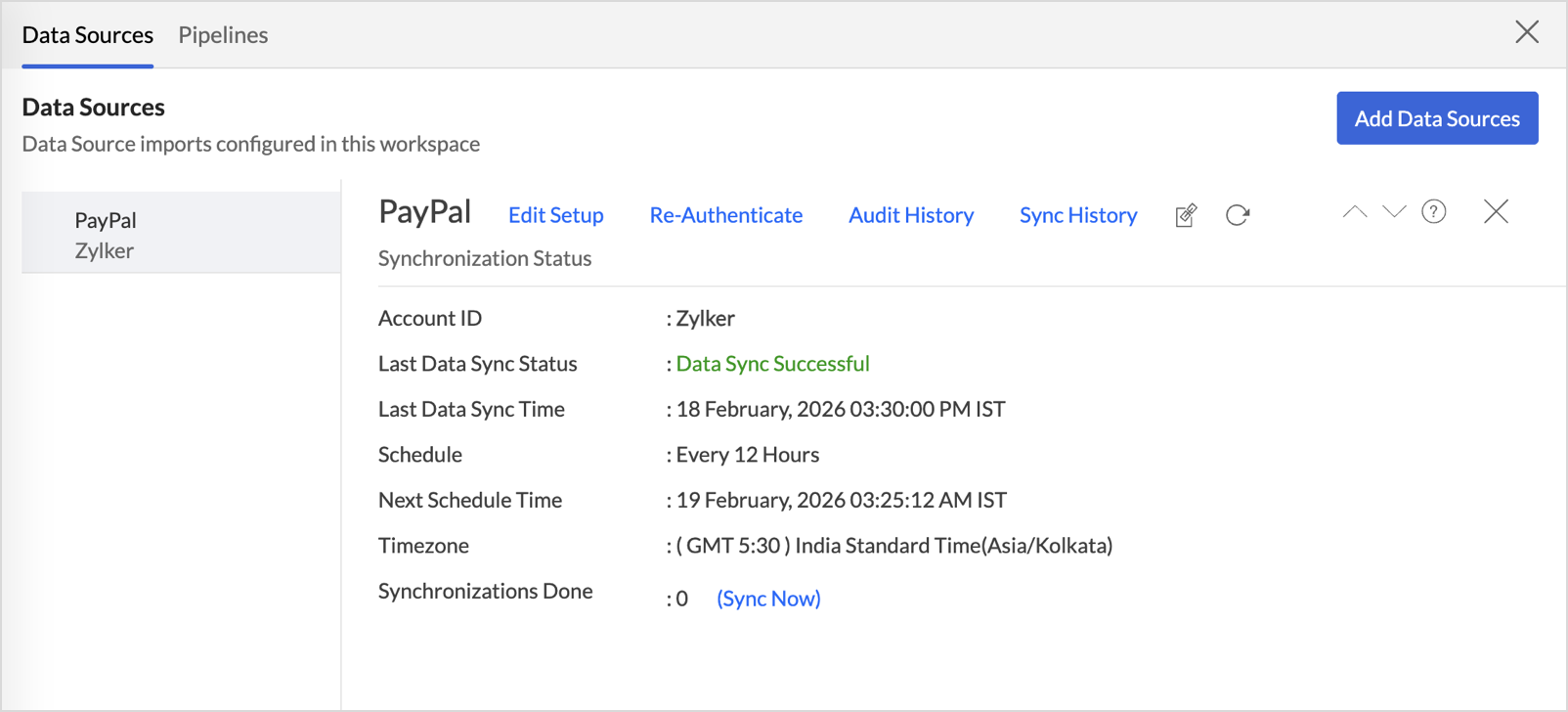- Click Data sources > Sync History.