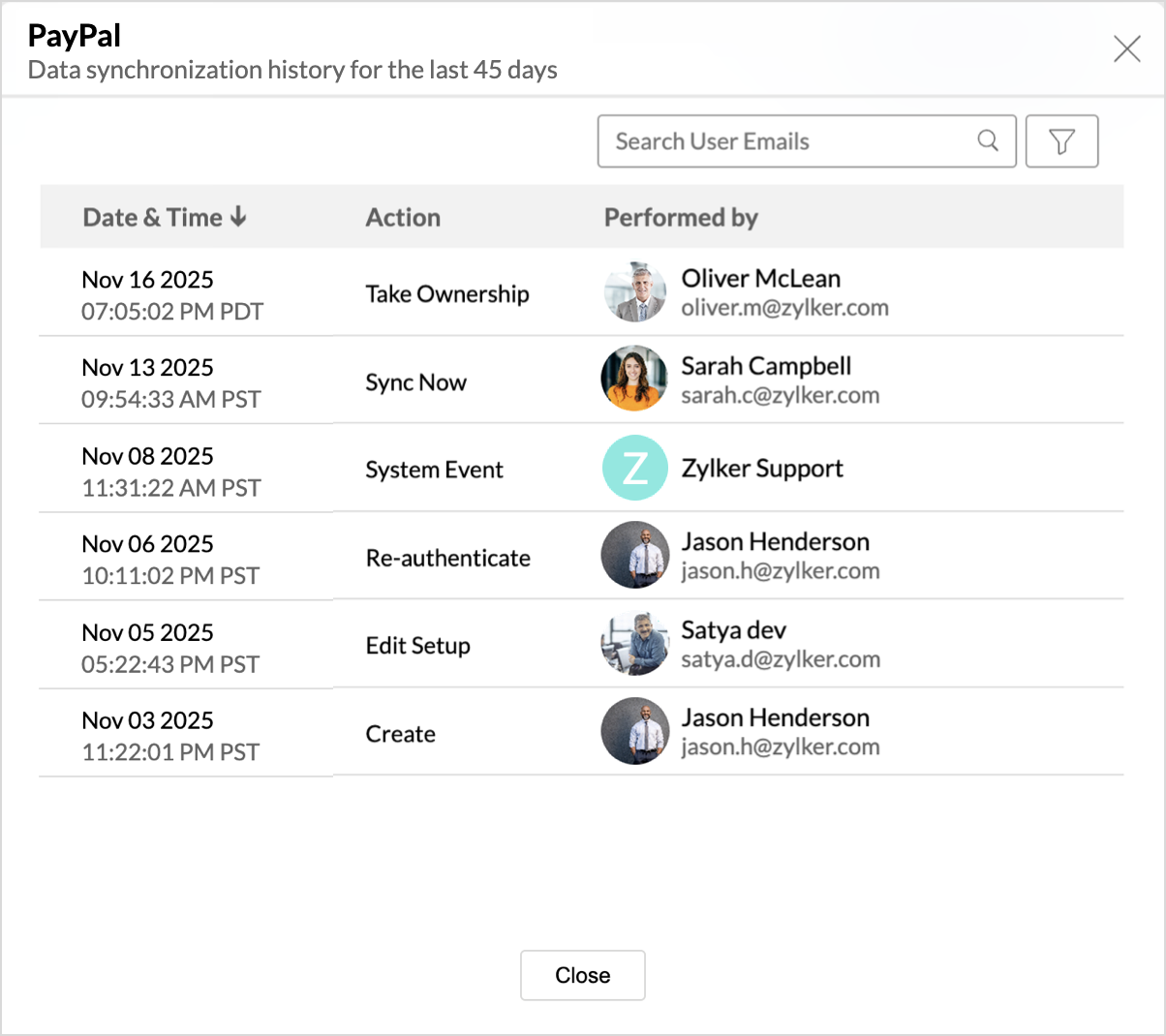 Zoho Analytics logs all the user activities and system events within the PayPal workspace. The following actions that are logged in Zoho Analytics,