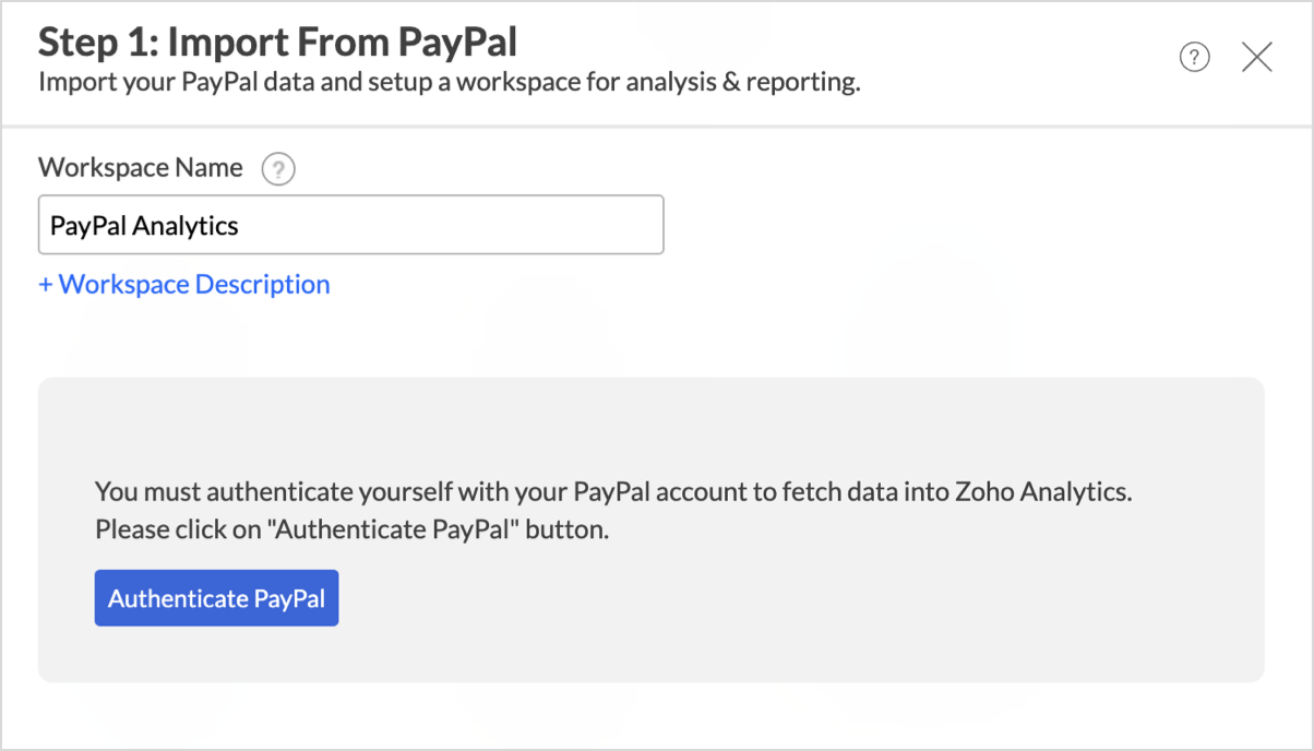 Follow the below steps to seamlessly import your PayPal data into Zoho Analytics: