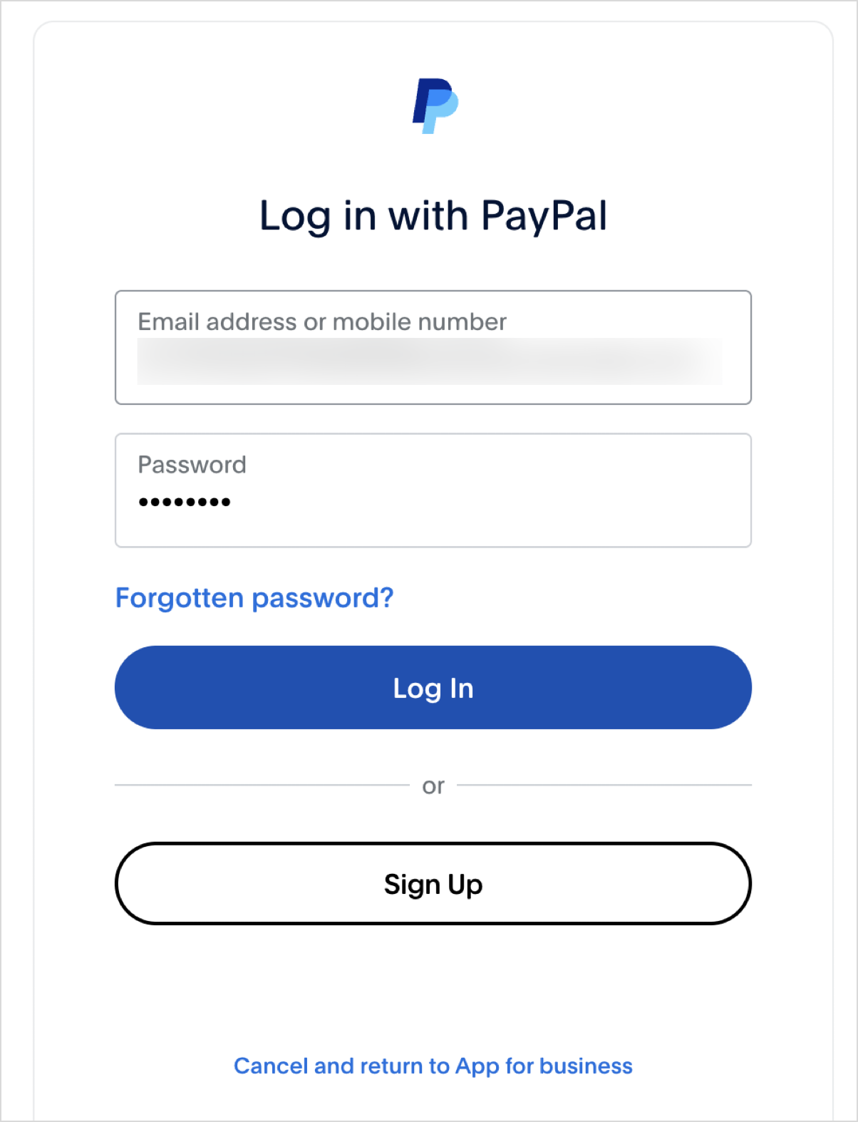 - You will redirected to Log In with PayPal page, enter the credentials and click Log In to authenticate.