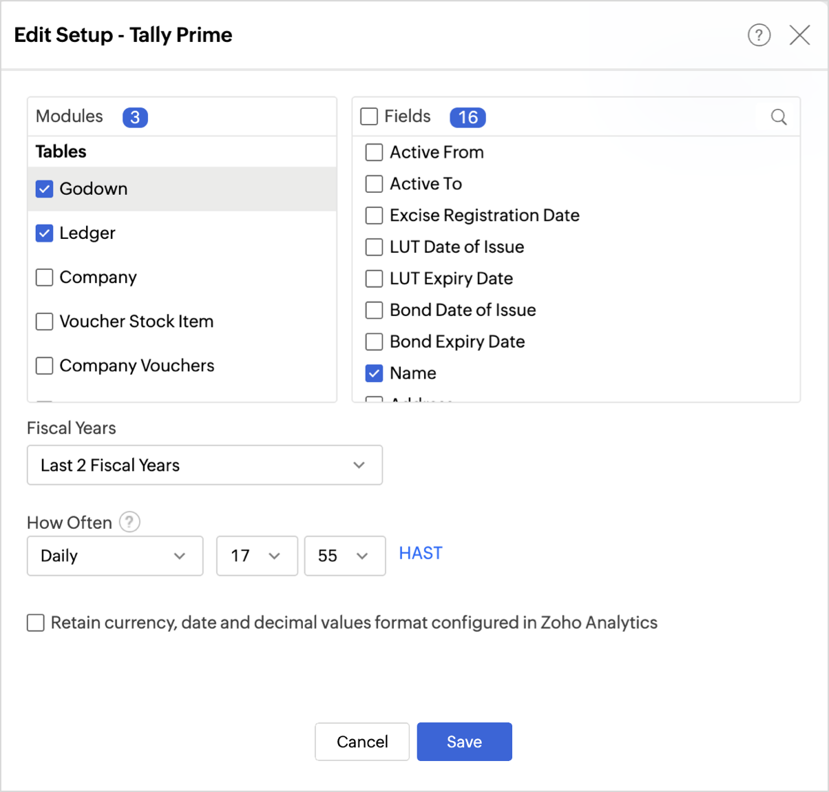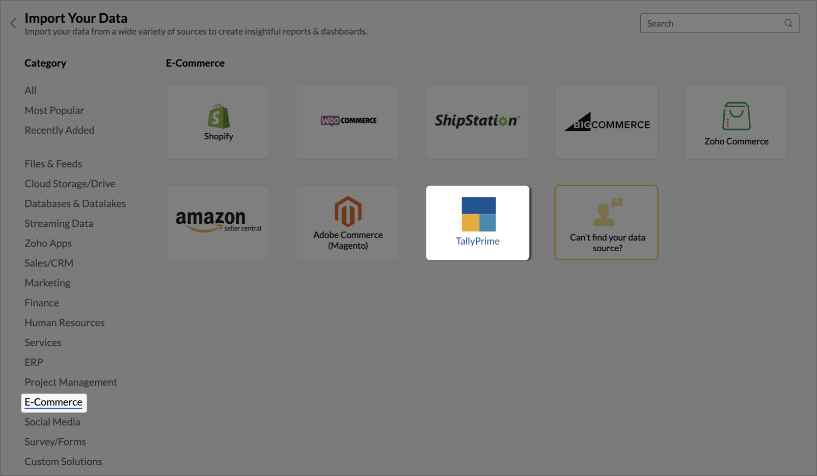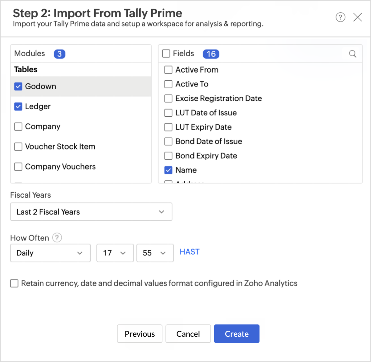 Follow the below steps to import your TallyPrime data into Zoho Analytics seamlessly: