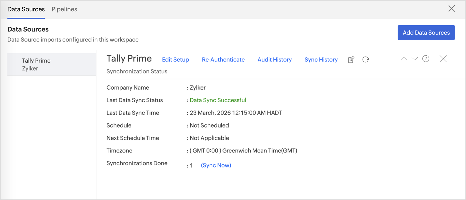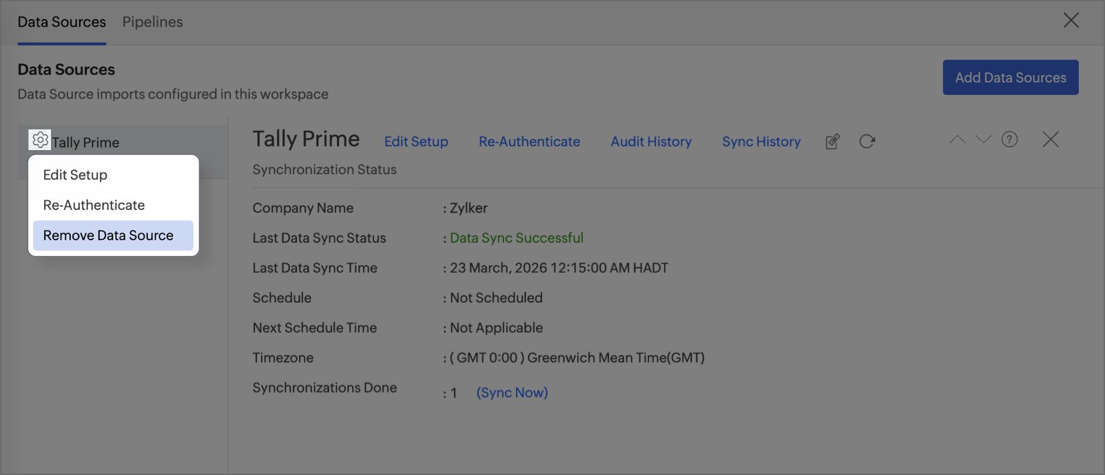 Once you have made the changes, click the Sync now option in the data source tab to resume data sync. If the issue persists, contact support@zohoanalytics.com
