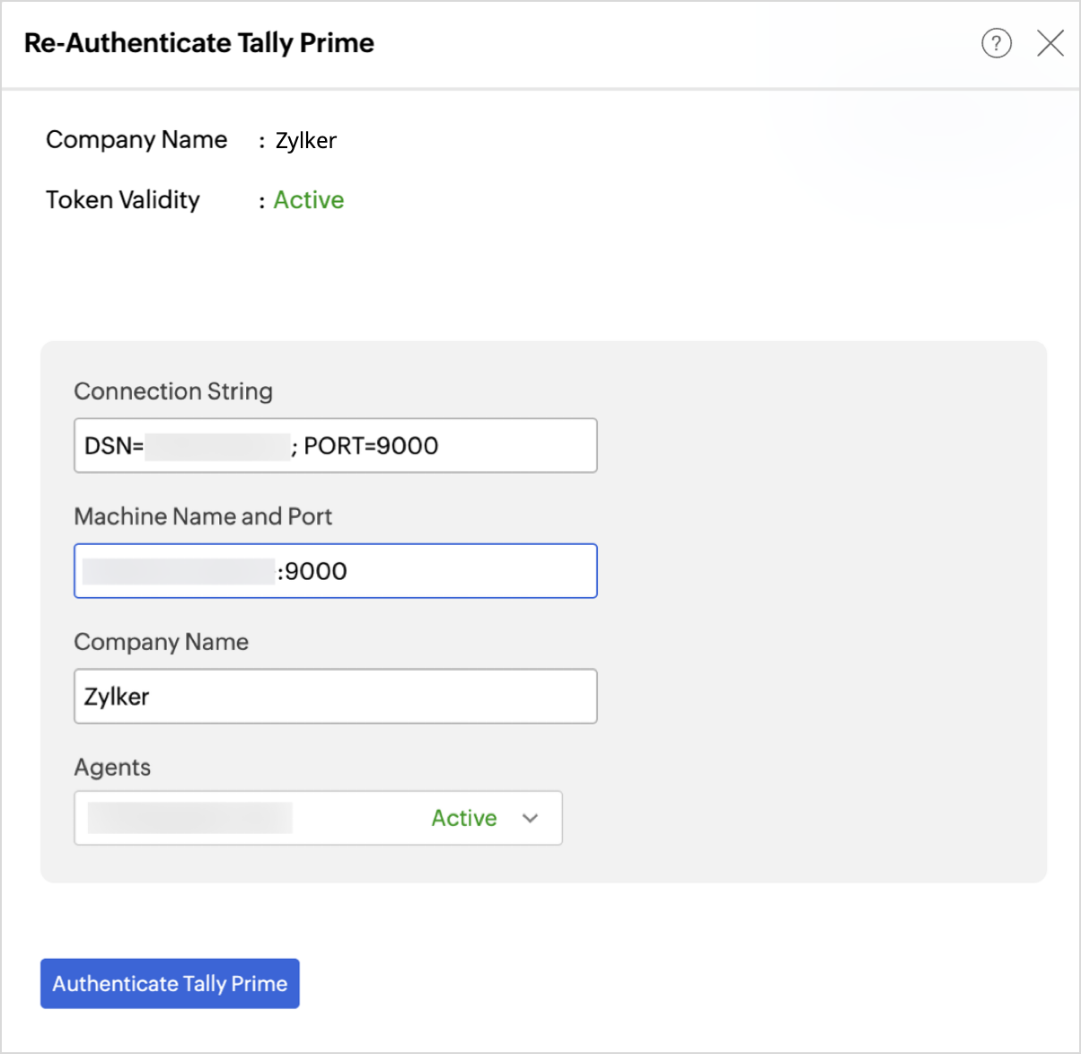 Enter Connection Credentials from your TallyPrime Account.