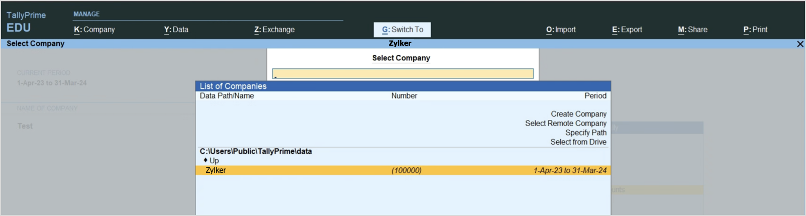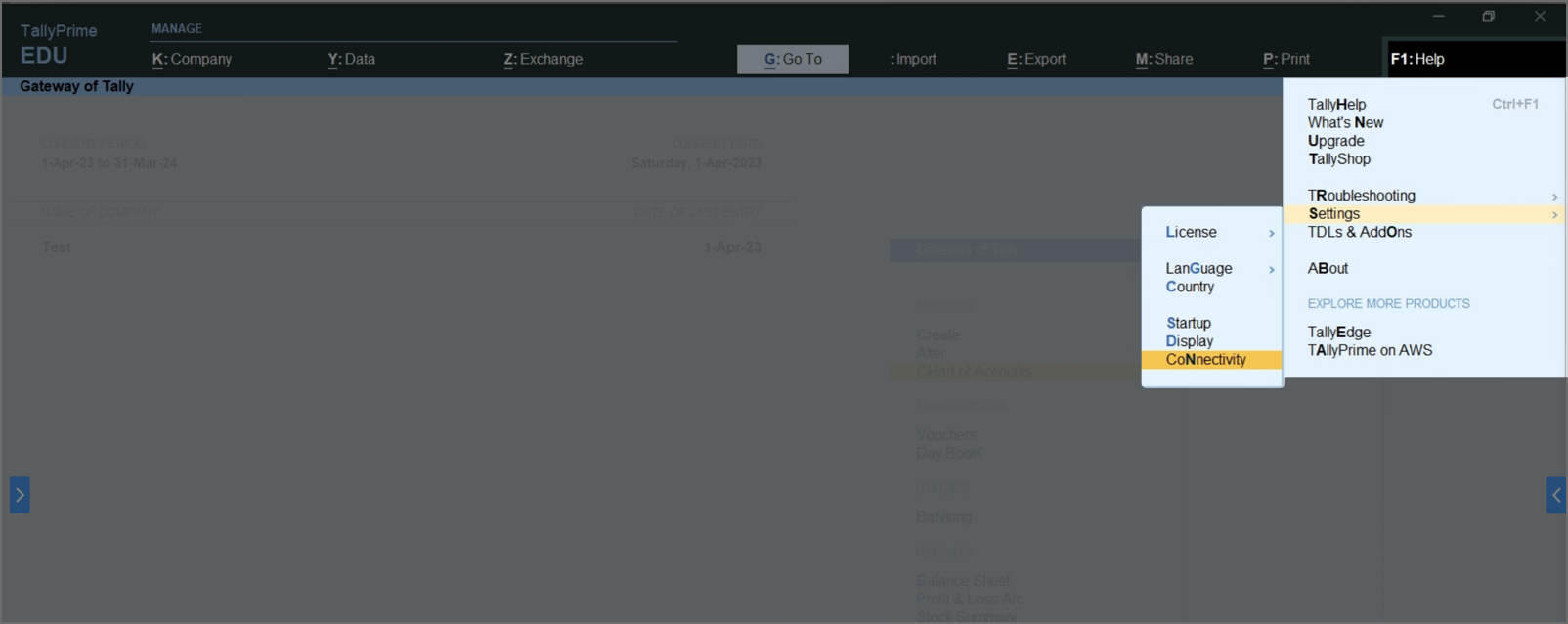 - Open TallyPrime.