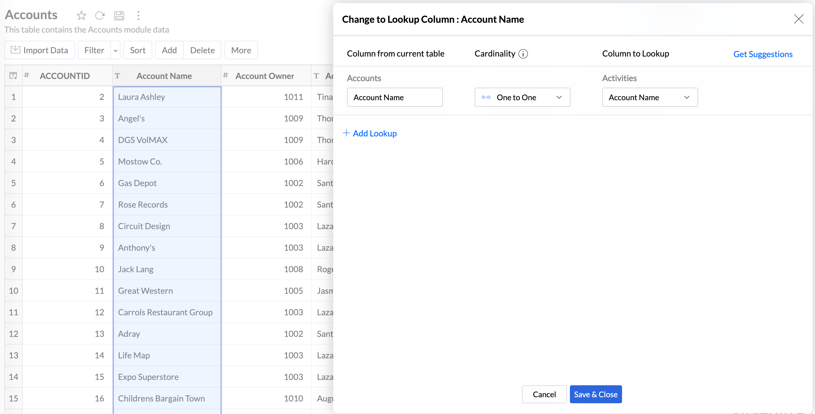 Zoho Analytics auto identifies similar columns and provides suggestions for lookup while importing. Click here to learn more about Joining Tables.