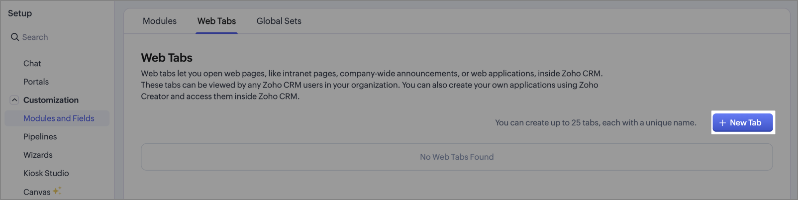 To create a Web Tab in Zoho CRM