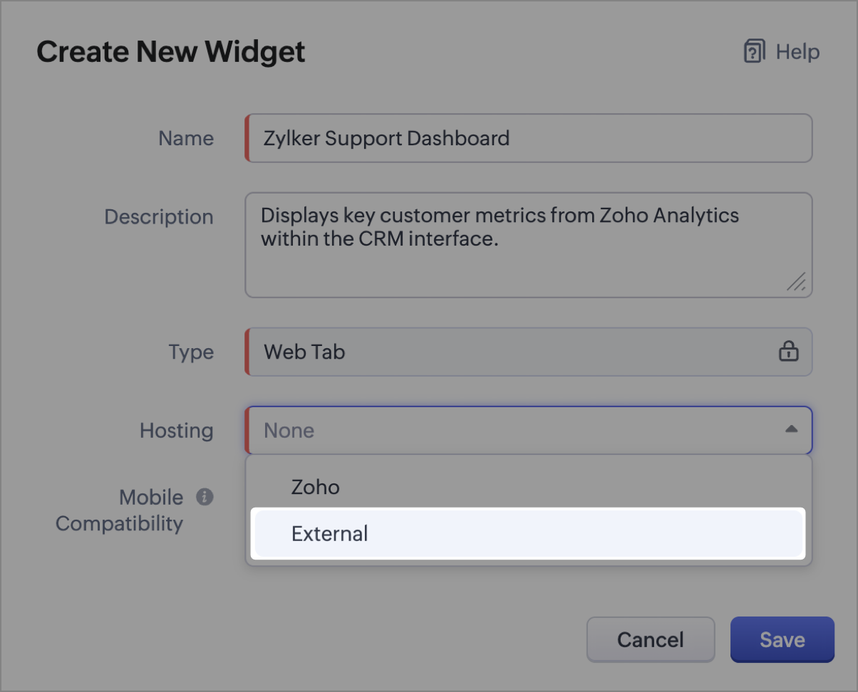 - Mobile Compatibility - Turn this on to make the widget available in Zoho CRM mobile apps.