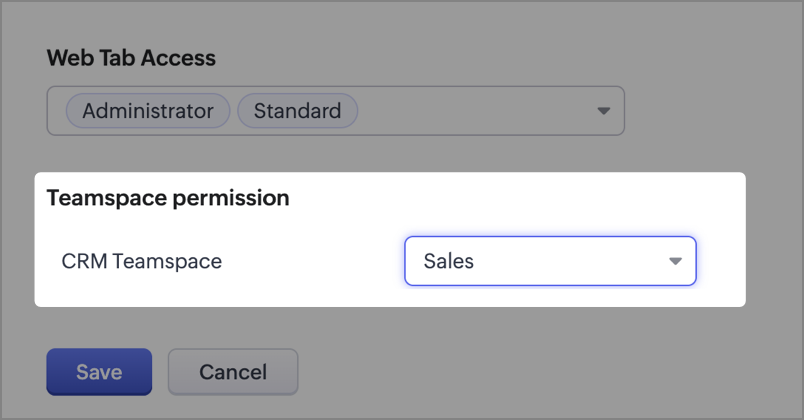 - Under Teamspace permission, select the CRM teamspace where the Web Tab should be created.