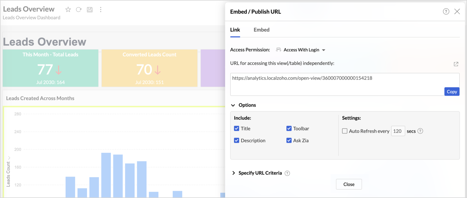 Get the Report or Dashboard URL from Zoho Analytics