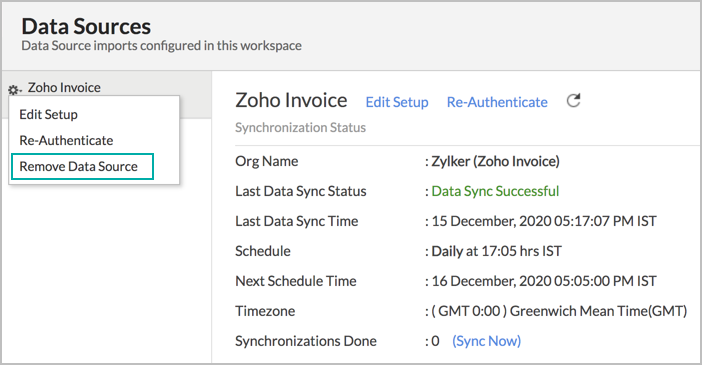 - How do I re-authenticate my Zoho Invoice account in Zoho Analytics?
