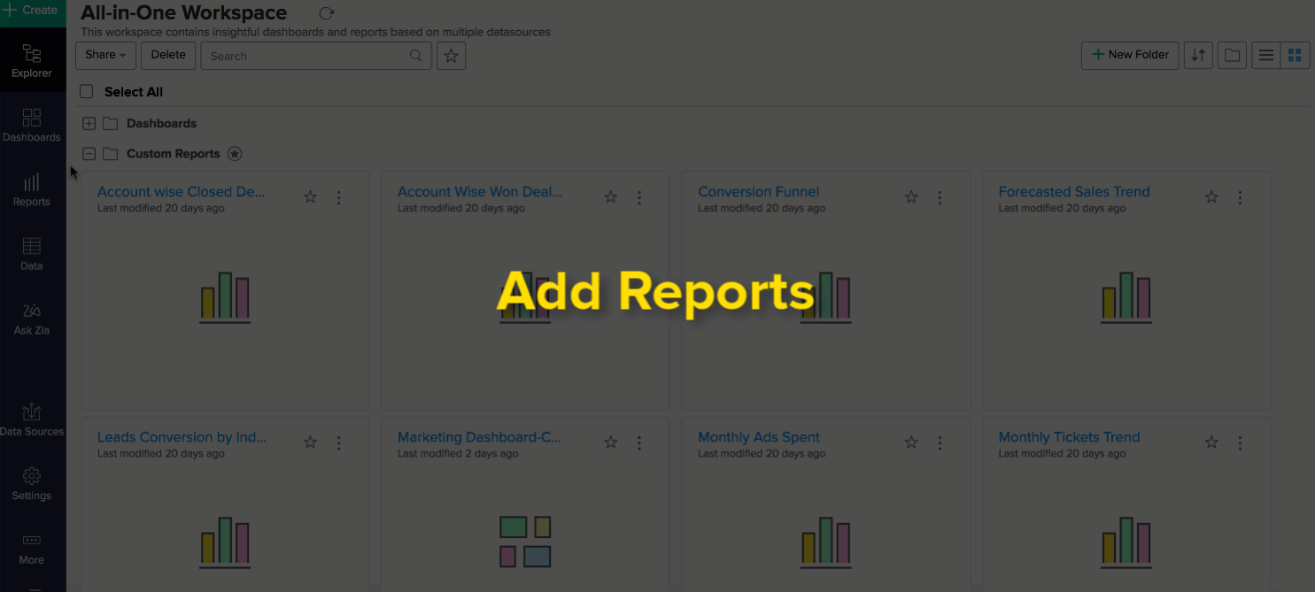 Follow the steps below to add reports to your dashboard.
