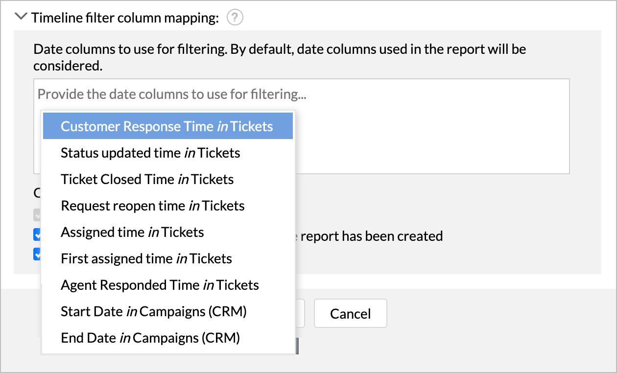 - On date columns in the table on which the report has been created.