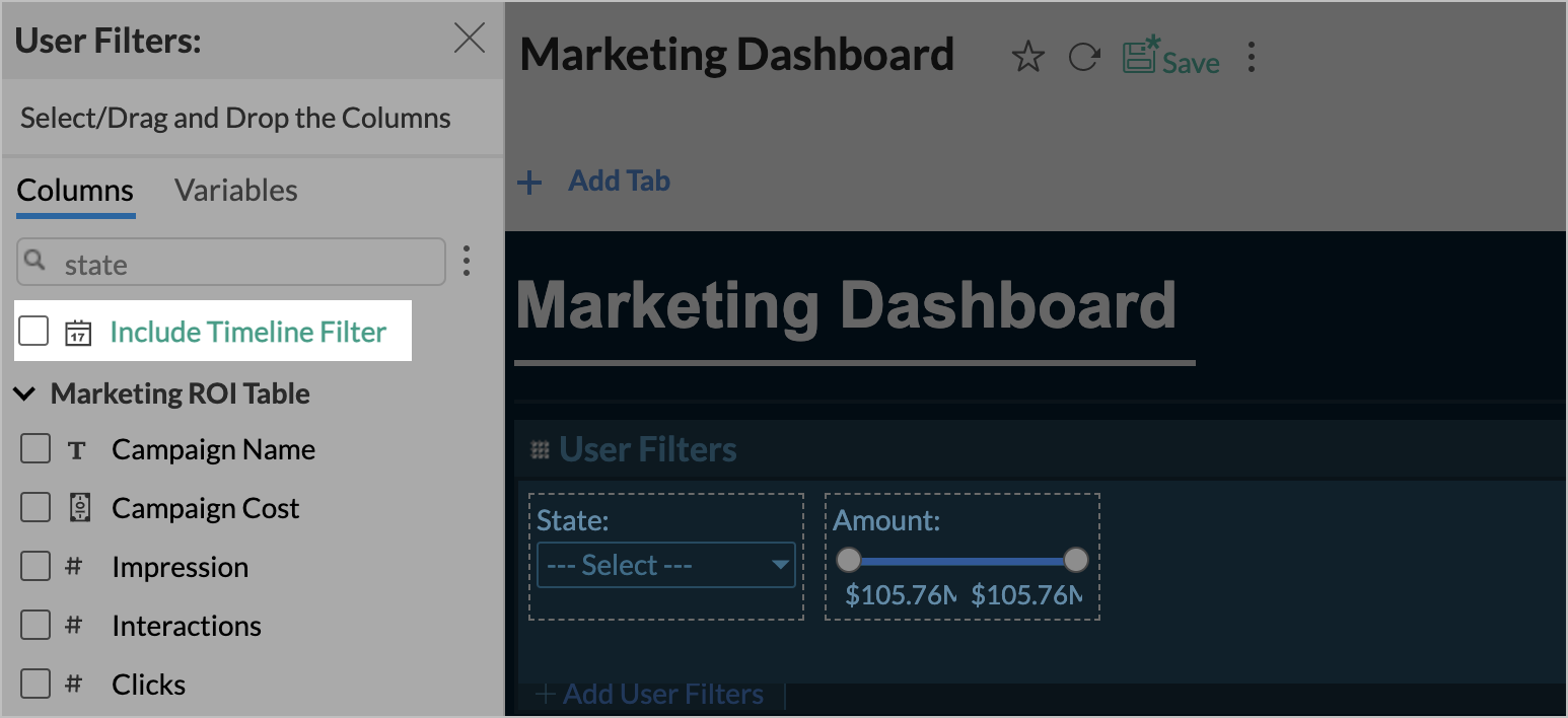 - The Timeline Filter will be added in the User Filter tab.