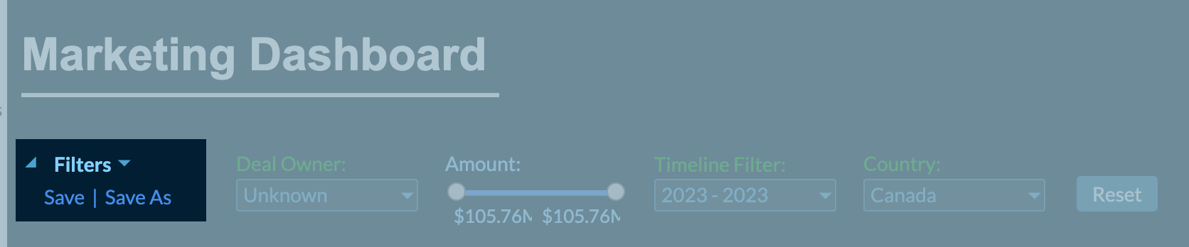 Now you can click on any data point and filter all other dependent views in the dashboard. Reports as Filters allows you to filter by the following filtering options: