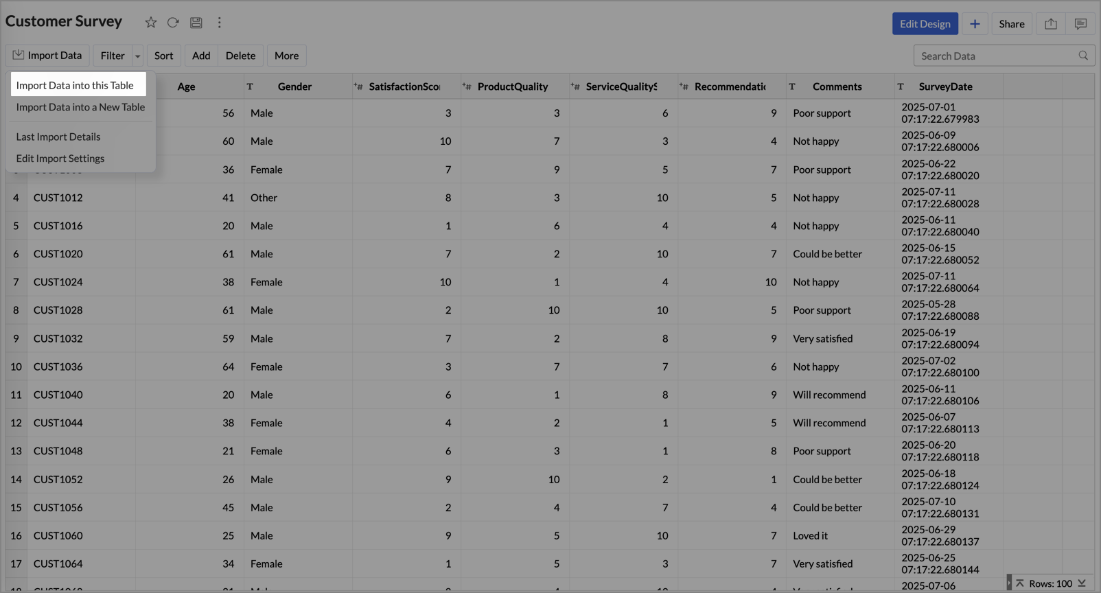 - Any actions, such as adding a new column, creating formulas, formatting columns, and having lookups defined, will be preserved during the import rollback.