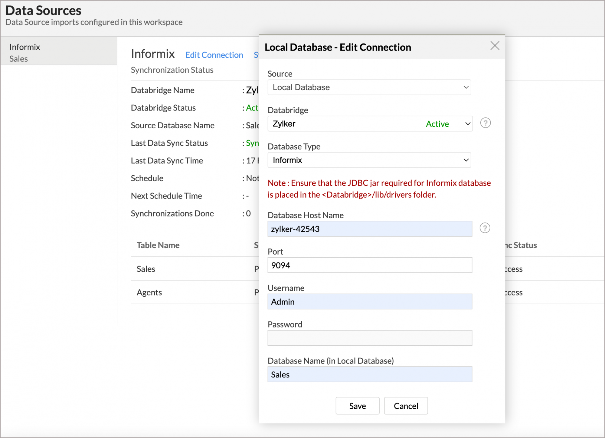 - Click Save. The data for your Informix database will be imported into Zoho Analytics in the set interval.
