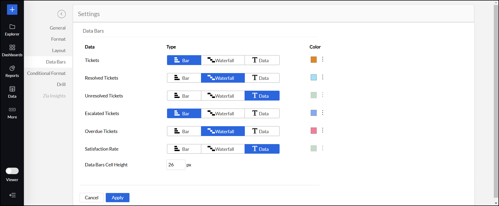 - Data Bars Cell Height: Enter your preferred height value in pixels for the Data Bars cells.