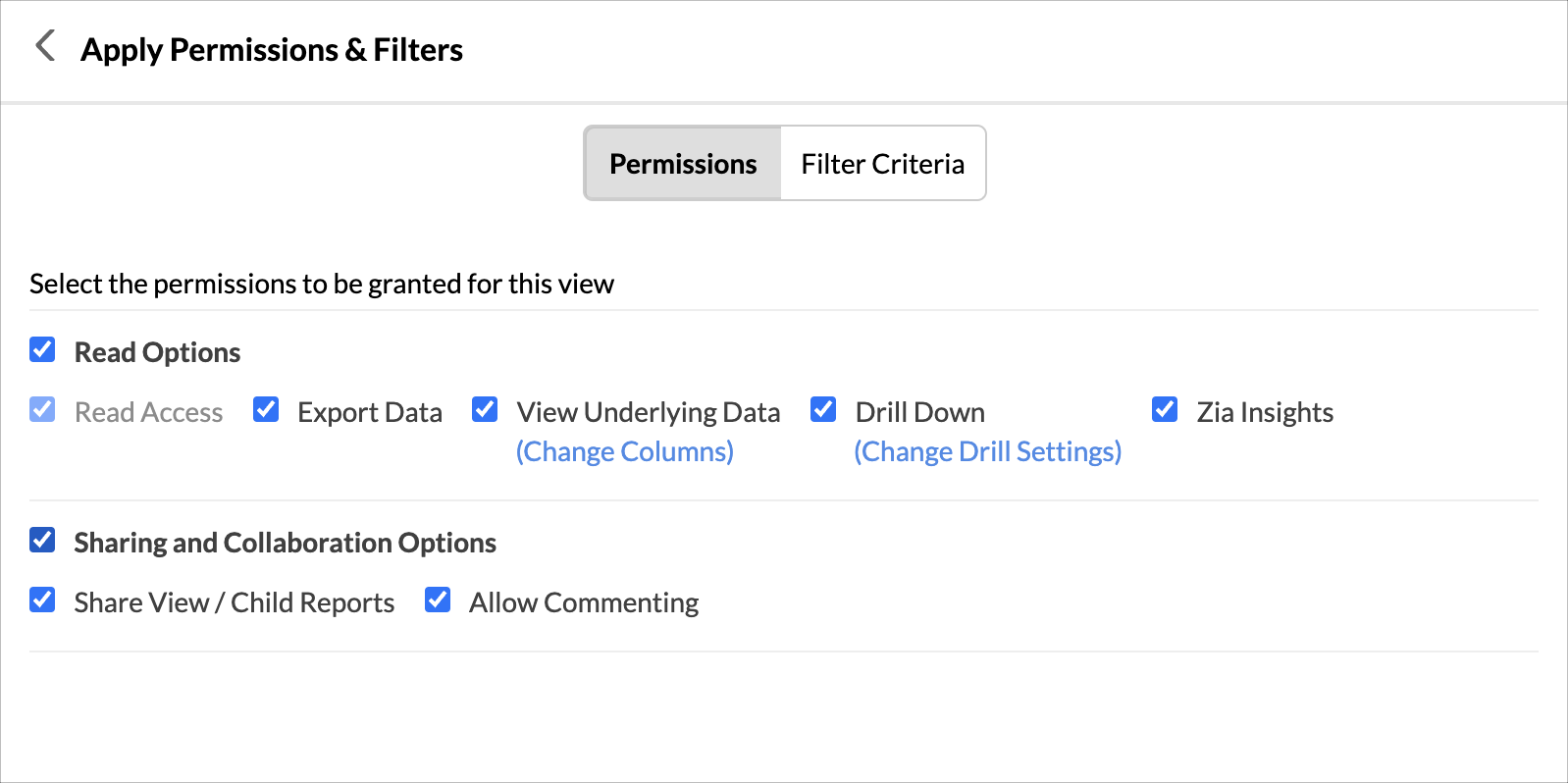 Zoho Analytics provides methods to filter the data that you are sharing, so that you can share only the data that you intend to and retain the rest of the data authentic.
