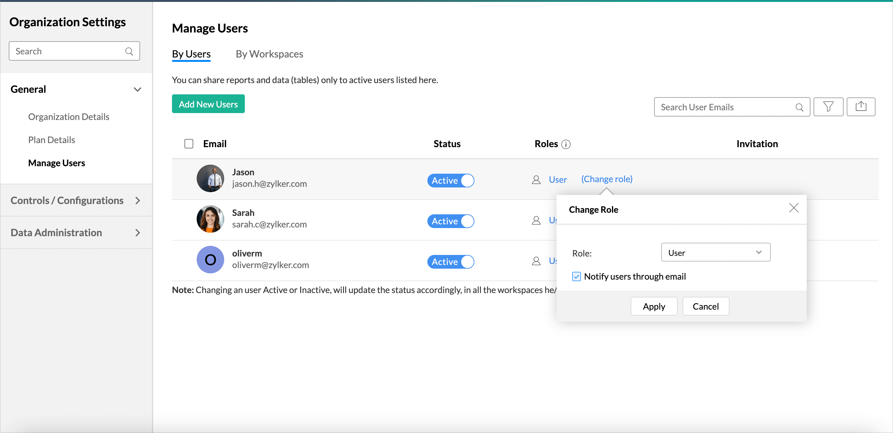 - Click Apply. The user will be set as Viewer. All views shared with them will be in Viewer mode.