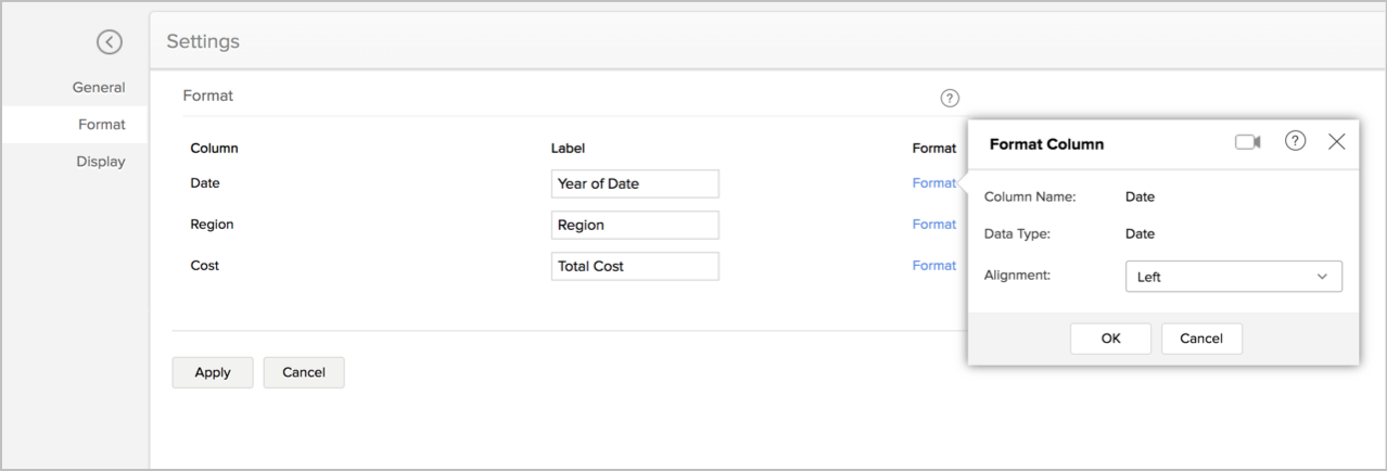 Using the right format is imperative for both analysis and interpretation of the data. Zoho Analytics provides many options to format a column based on the data type. This helps ensure all the data points in the column have the same consistent format.