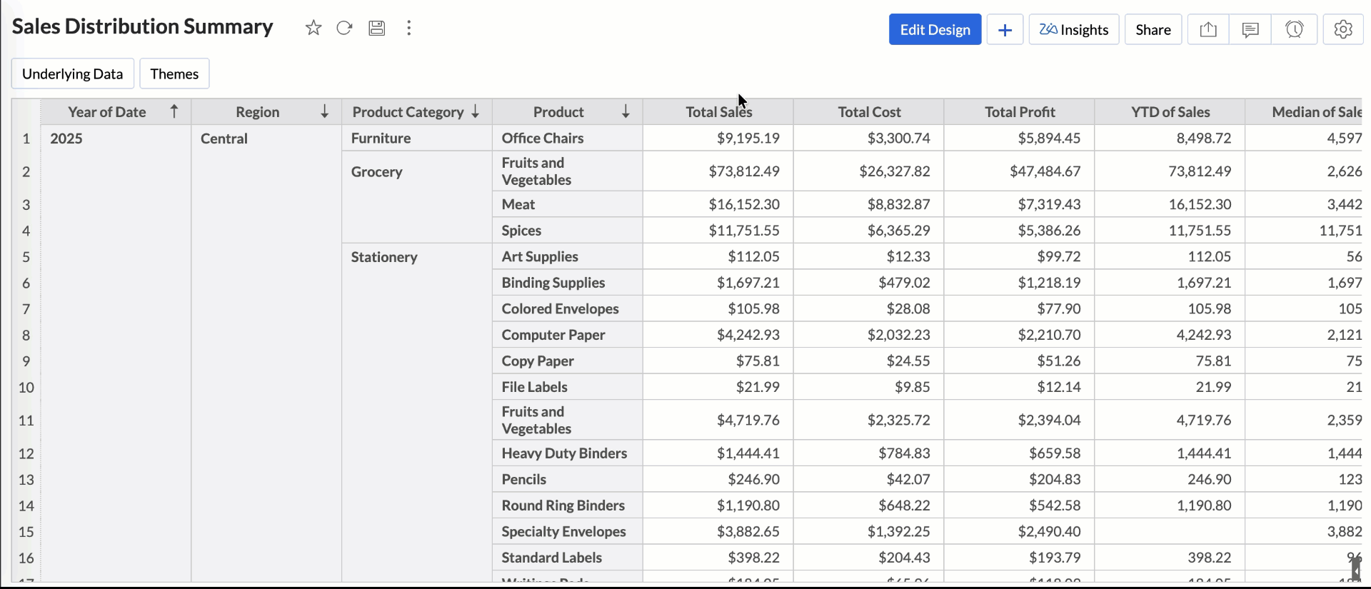 In a Summary view, you can freeze one or more columns to keep them visible while scrolling horizontally. This is especially helpful when your report includes several metrics or calculated columns, and you want to keep key identifiers in view.