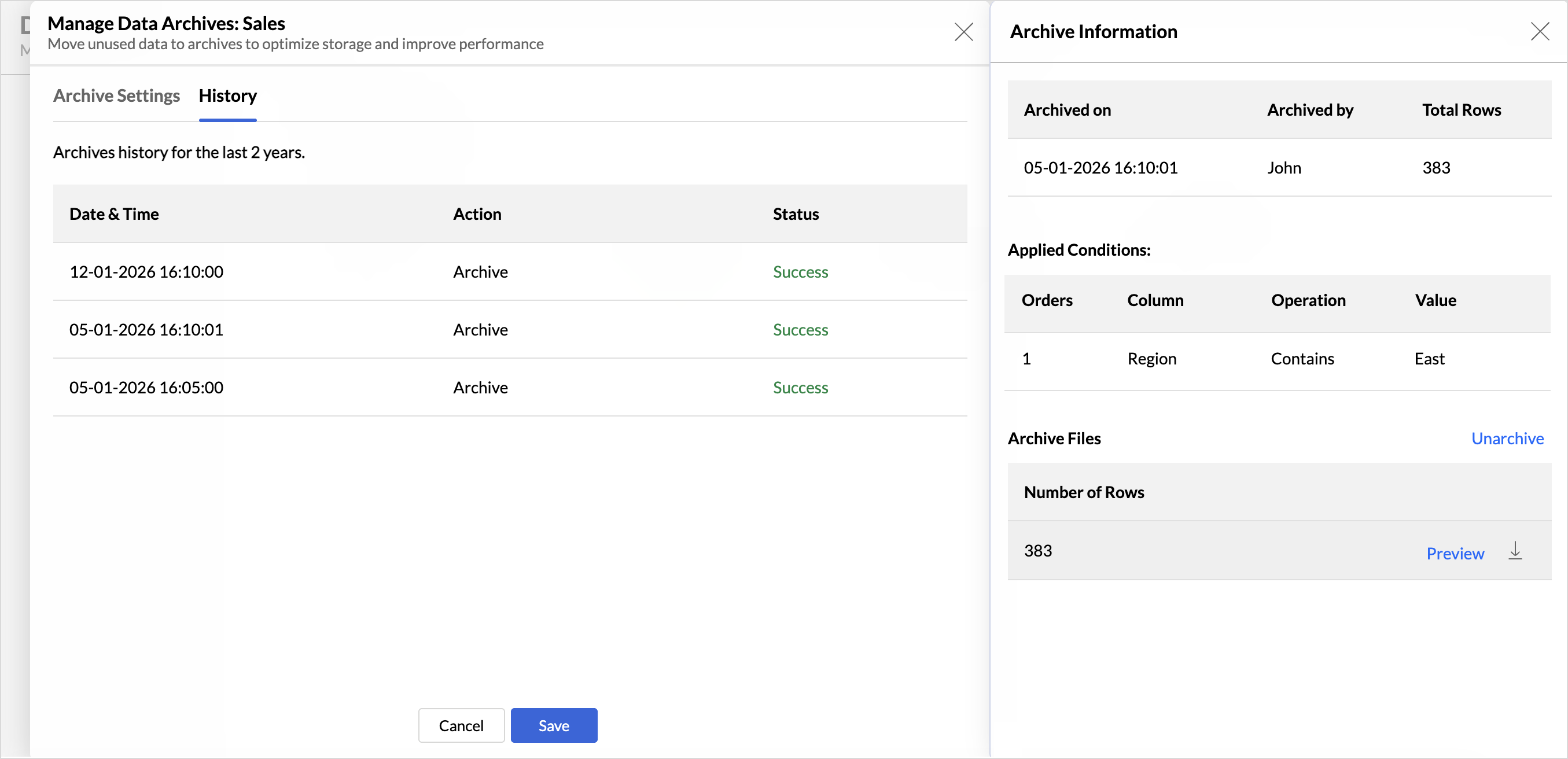 - Review and Optimize Regularly: Periodically revisit archive rules to align with changing data usage and reporting needs. Update archive conditions and schedules as required, and remove any outdated or unused archive schedules to keep archiving management efficient.