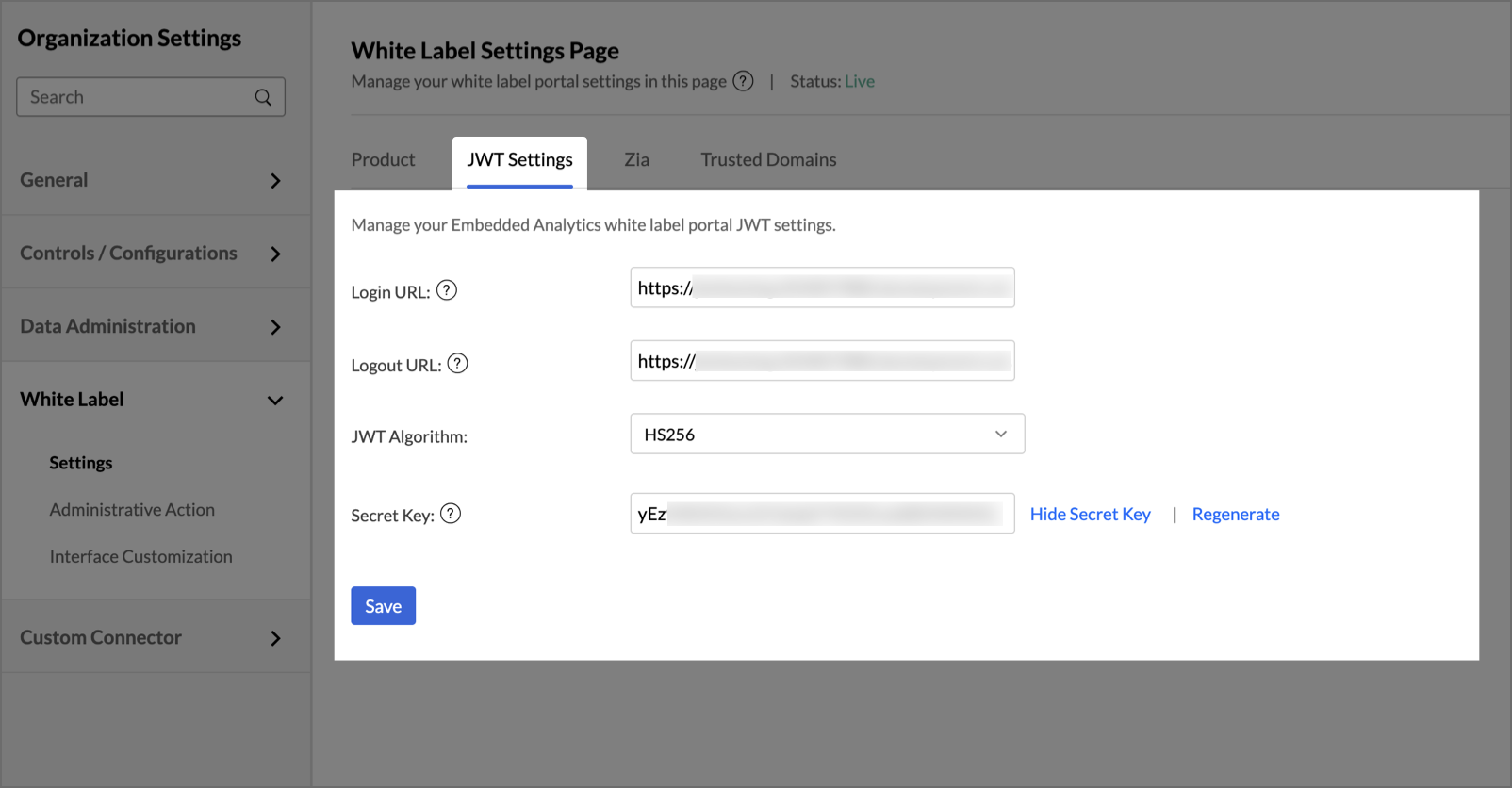 Configure and manage the JWT settings of your embedded analytics white label portal.