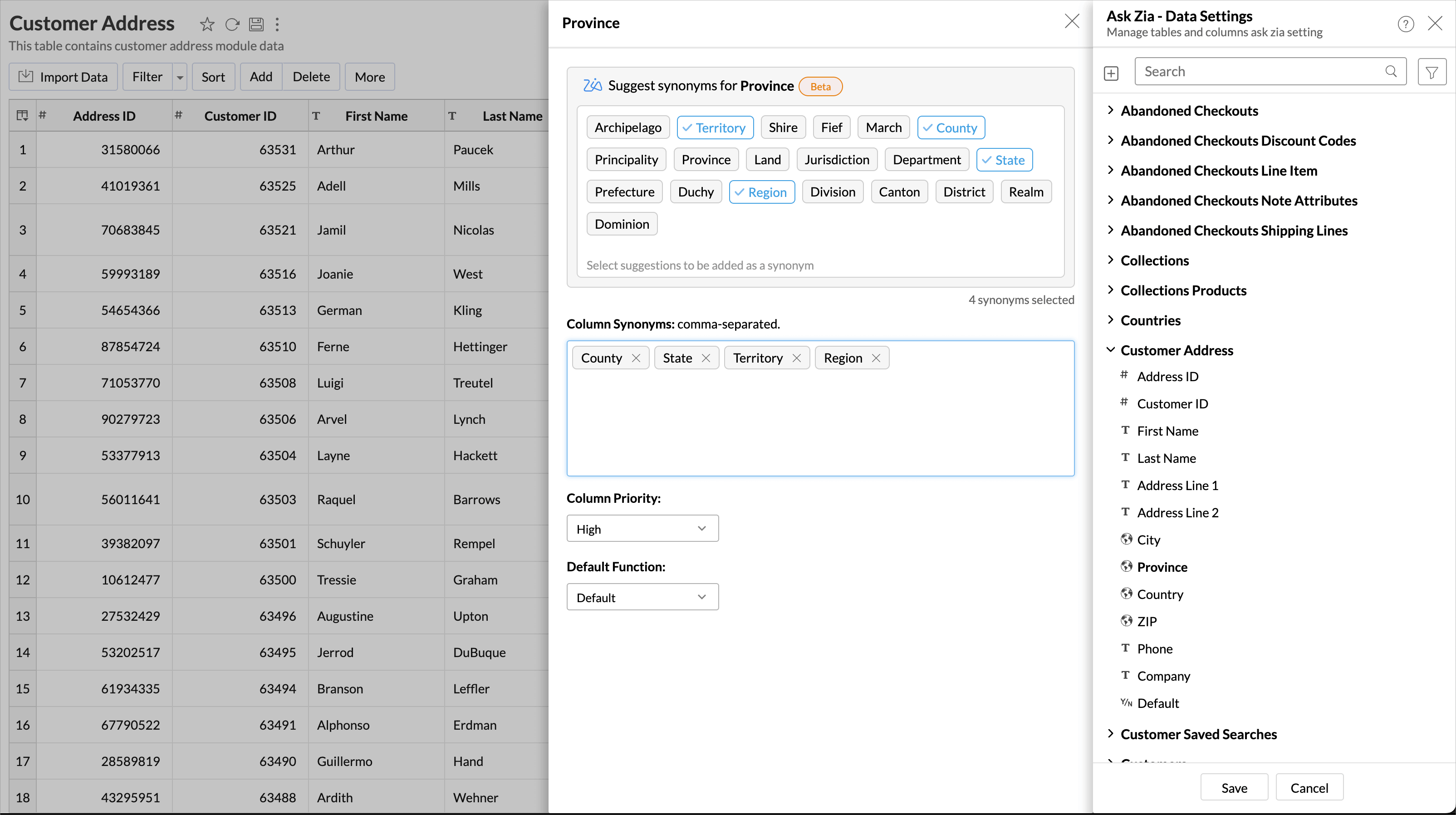 Zoho Analytics integration with ChatGPT makes working with data much easier and saves time spent finding formulas, building complex queries, and discovering datasets. It also helps to find synonyms for data columns to train Ask Zia effectively and enhance natural language processing capabilities.